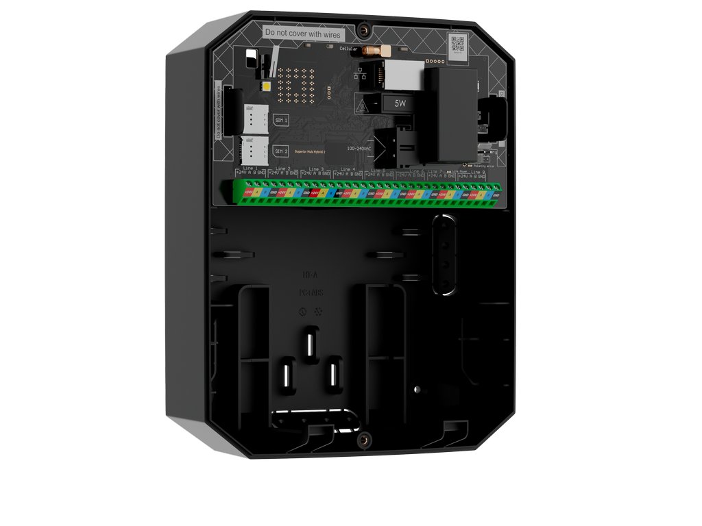 • Superior Hub Hybrid 2 se záložní baterií 7 Ah může napájet systém 15 drátových zařízení po dobu 60 hodin. Bezdrátová zařízení pracují na baterie a nevyžadují dodatečné napájení
