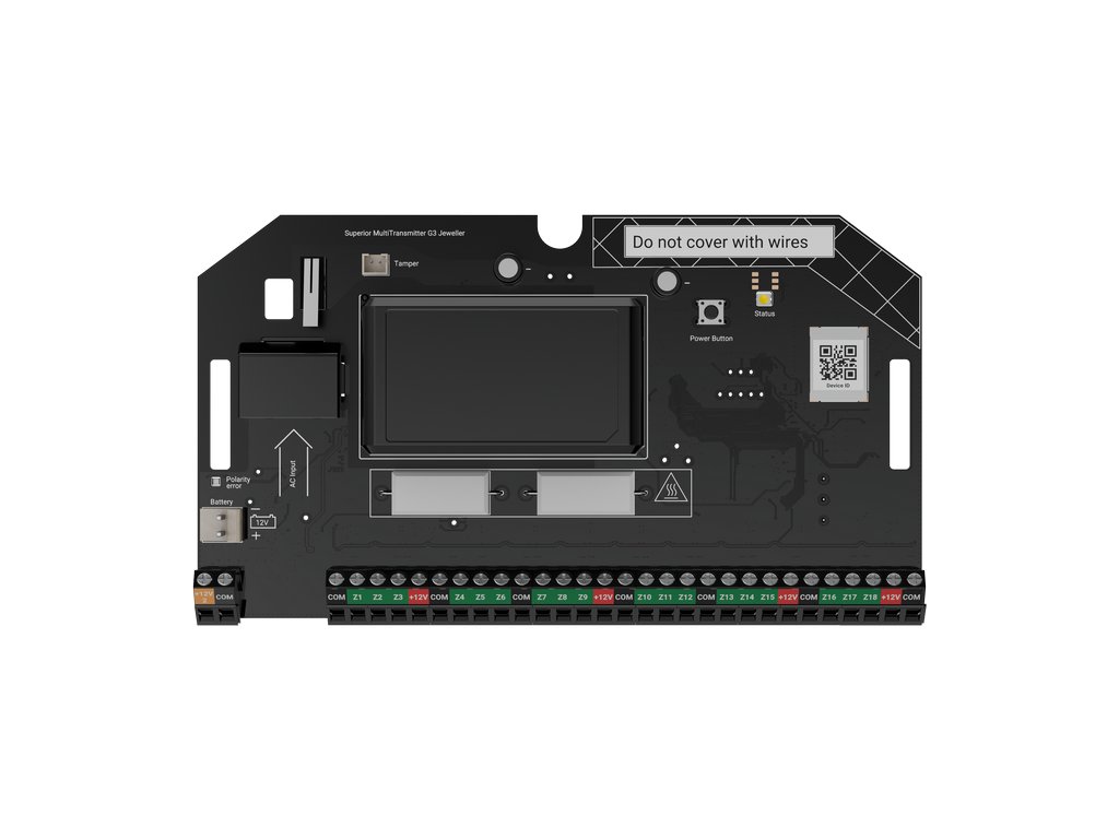 Toto je zařízení produktové řady Superior. Pouze akreditovaní partneři Ajax Systems mohou prodávat, instalovat a udržovat produkty Superior.Ajax Superior MultiTransmitter G3 Jeweller je k dispozici buď v originálním krytu nebo jako deska bez krytu. Obě verze jsou kompatibilní s kryty Ajax Case1.