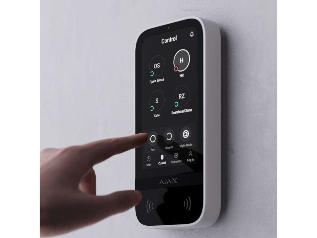 Ajax KeyPad TouchScreen Fibra je vybavená dotykovou obrazovkou a bezkontaktnou autorizáciou, čo umožňuje jednoduché a intuitívne ovládanie. Päťpalcový displej poskytuje rýchly prístup k aktuálnemu režimu zabezpečenia a aktivuje sa zdvihnutím ruky. Automatická regulácia jasu zaručuje optimálnu viditeľnosť za každých podmienok.