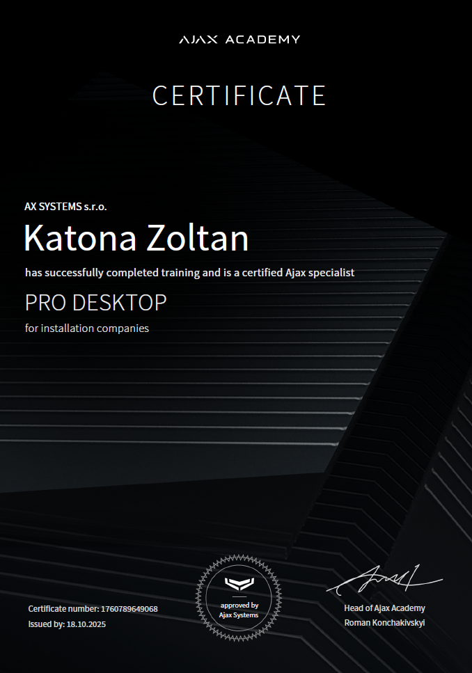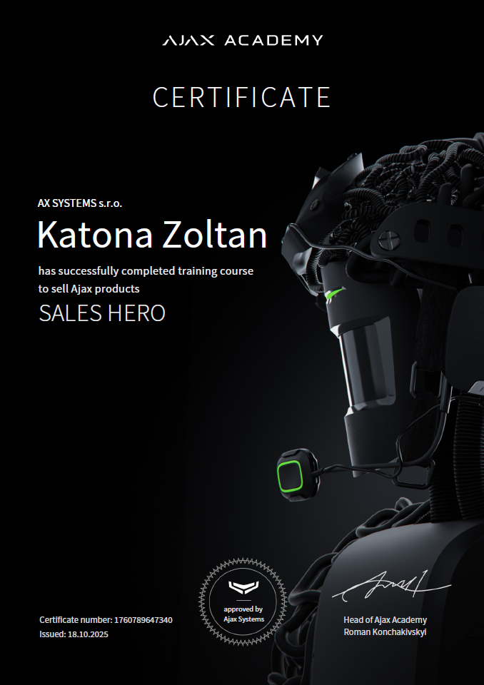 Garancia kvality – ako oficiálny partner AJAX SYSTEMS garantujeme originalitu, kvalitu a plnú kompatibilitu produktov.
