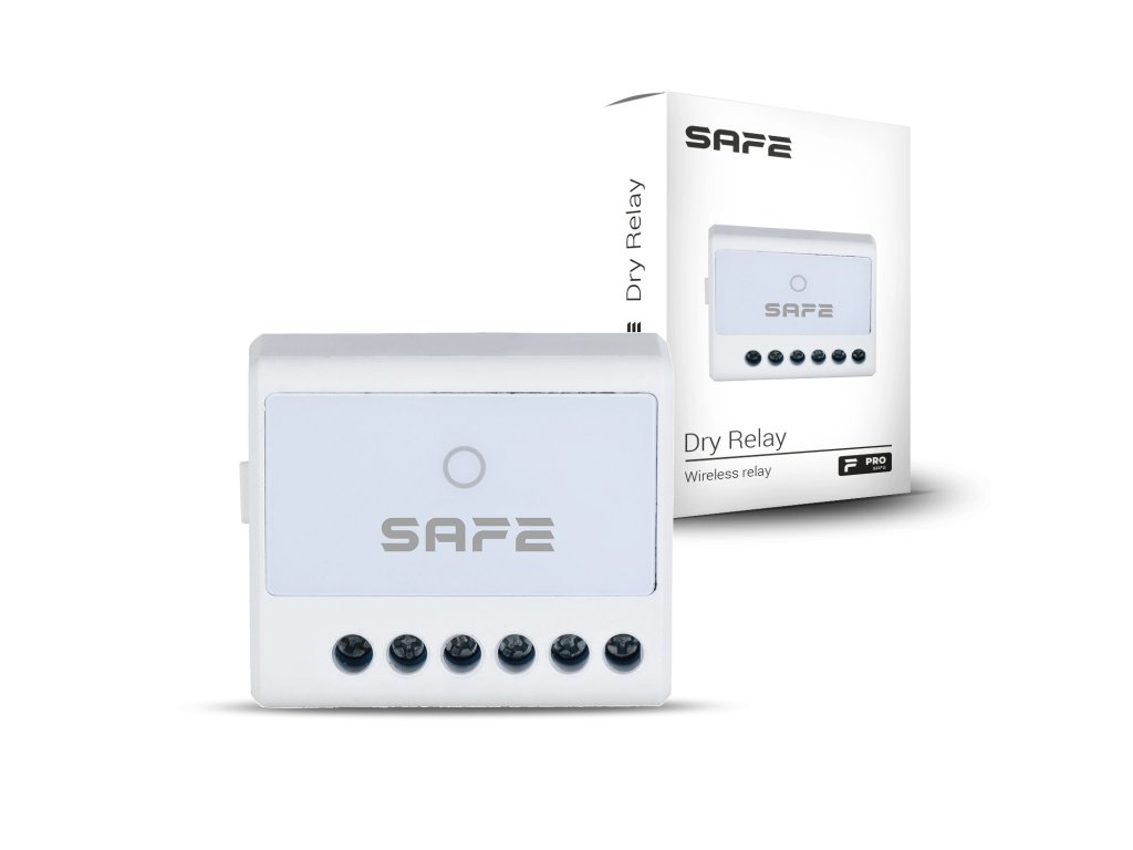 Dry Relay je vybaveno suchými, tedy bezpotenciálovými kontakty, které nejsou galvanicky propojeny se samotným zařízením. Díky tomu dokáže Dry Relay spolehlivě simulovat funkci tlačítka, spínače či jiných ovládacích prvků v elektrických obvodech s různým napětím – například u sirén, elektrických ventilů nebo elektromagnetických zámků. Ovládání kontaktů probíhá buď přímo na základě pokynu uživatele prostřednictvím aplikace ProSAFE, nebo zcela automaticky podle předem nastaveného automatizačního scénáře.