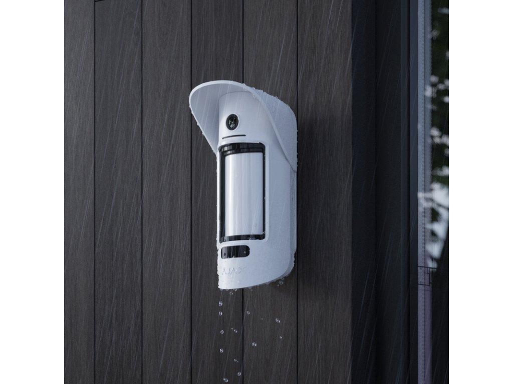 MotionCam Outdoor je pripravený na prevádzku v širokej škále nielen vnútorných, ale aj vonkajších aplikácií. Detektor je chránený pred prachom a vodou, je tiež vybavený technológiou teplotnej kompenzácie, ktorá zaisťuje efektívnu detekciu pohybu za akýchkoľvek poveternostných podmienok. Pribalená strieška chráni senzory maskovania pred dažďom a snehom.